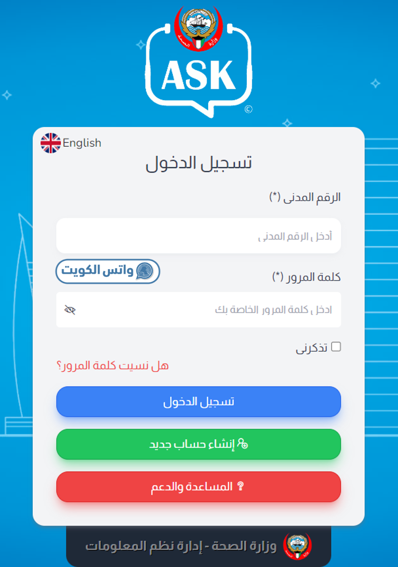 اقرأ أيضًا: رابط حجز موعد مستشفى وزارة الصحة | رابط حجز موعد مستشفى العدان | رابط حجز موعد مستشفى الفروانية | رابط حجز موعد مستشفى الجهراء | رابط حجز موعد مستشفى الصباح