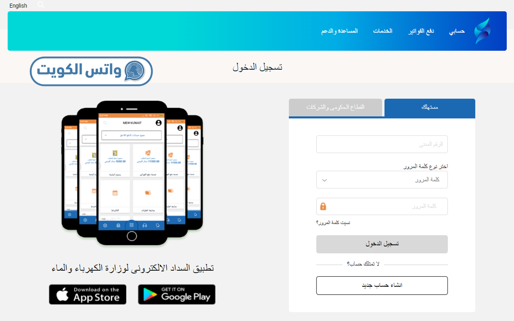 فيما يلي خطوات دفع فواتير الكهرباء والماء أون لاين في الكويت: [1]