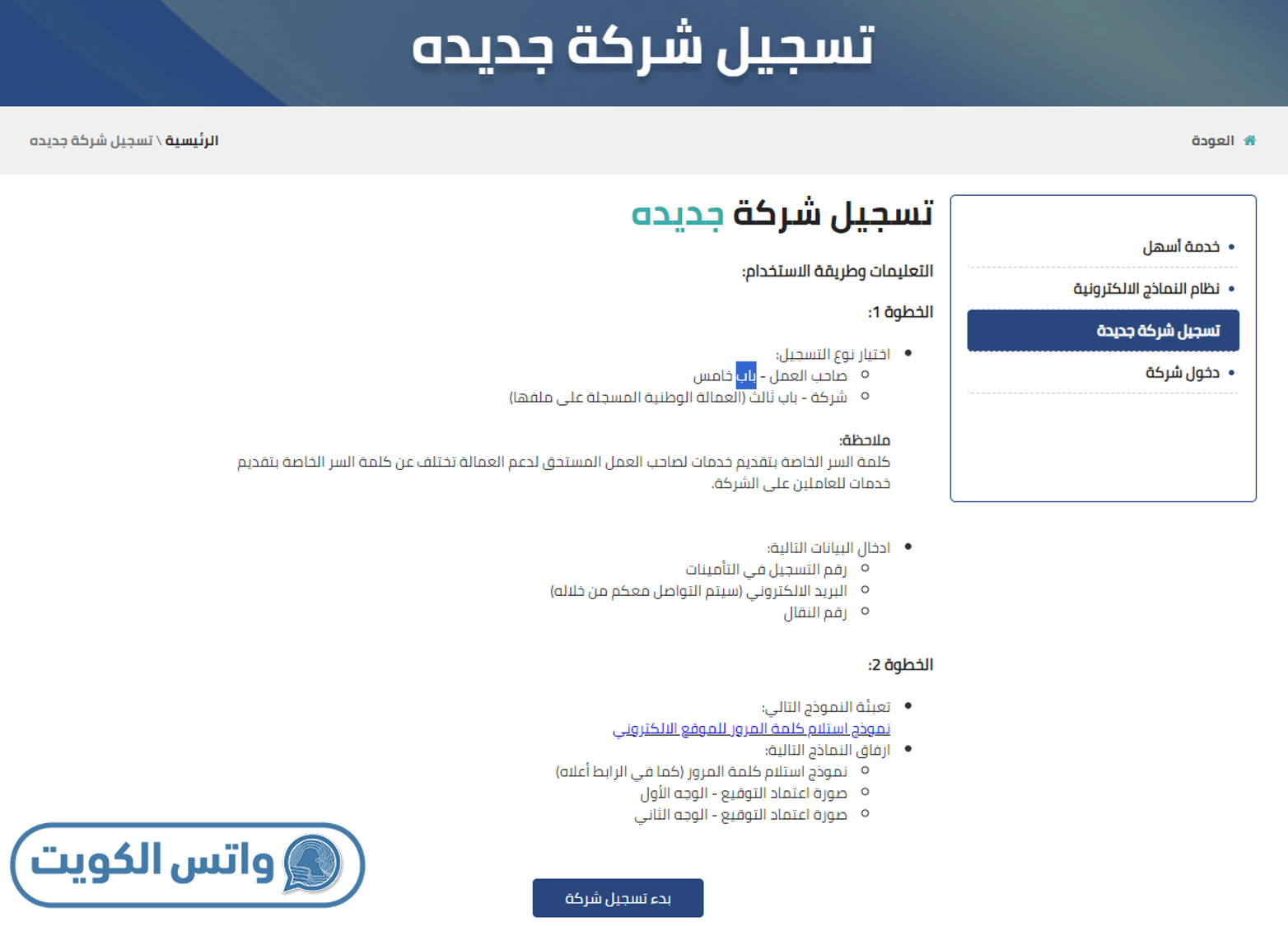 - الضغط على أيقونة بدء تسجيل شركة.
