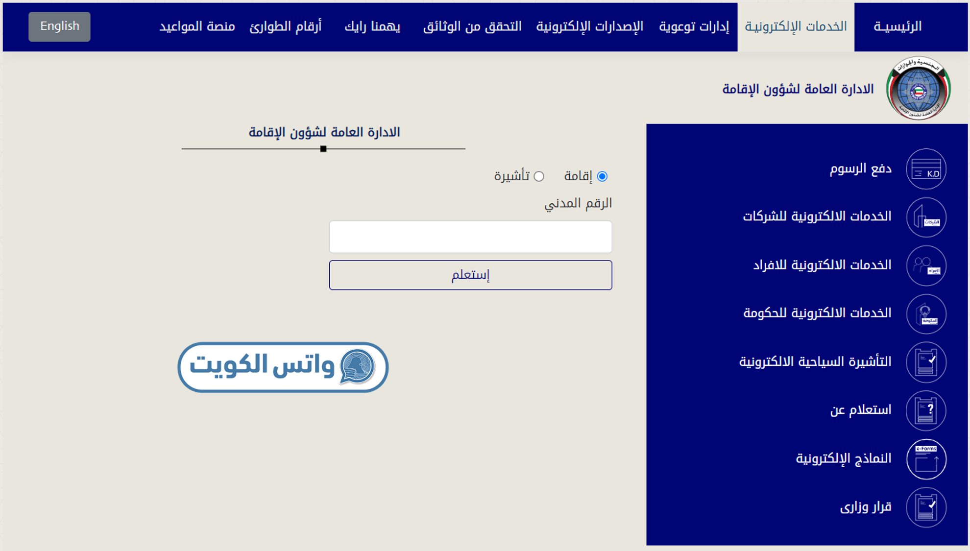 • كتابة الرقم المدني الكويتي ثم الضغط على استعلام.