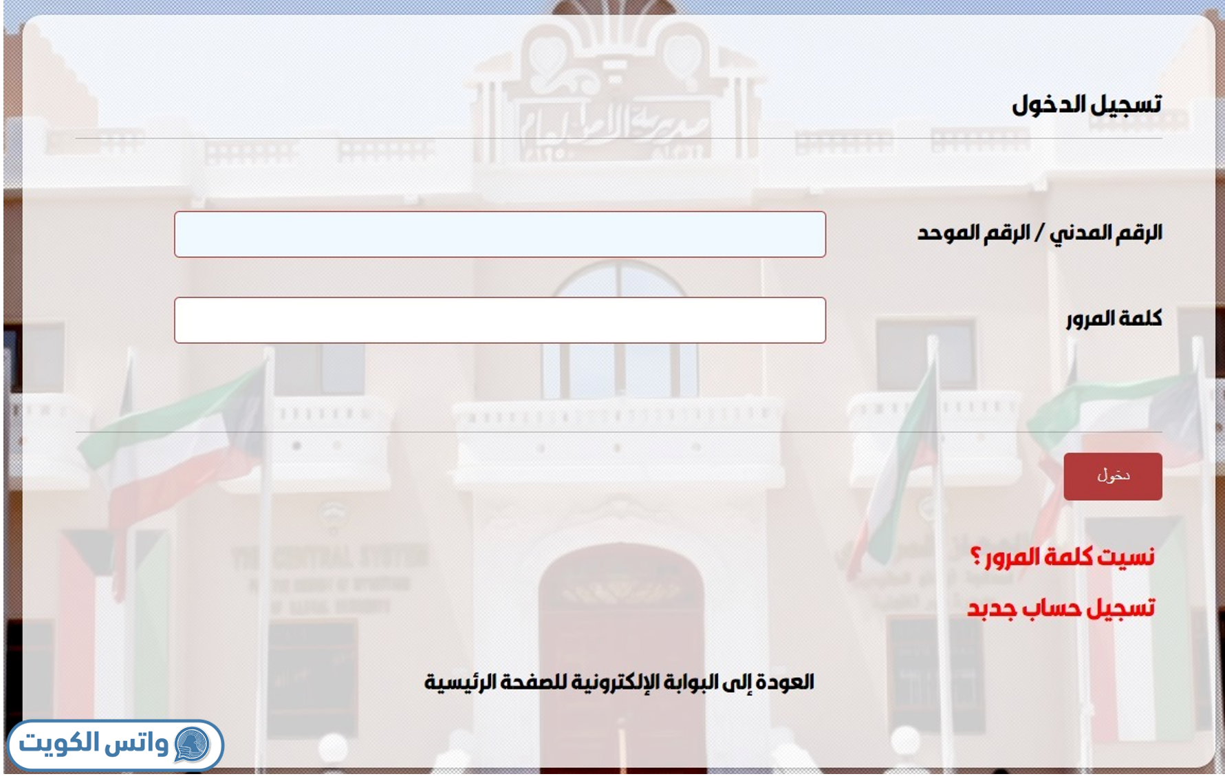 • كتابة الرقم المدني أو الرقم الموحد في الحقل المخصص.